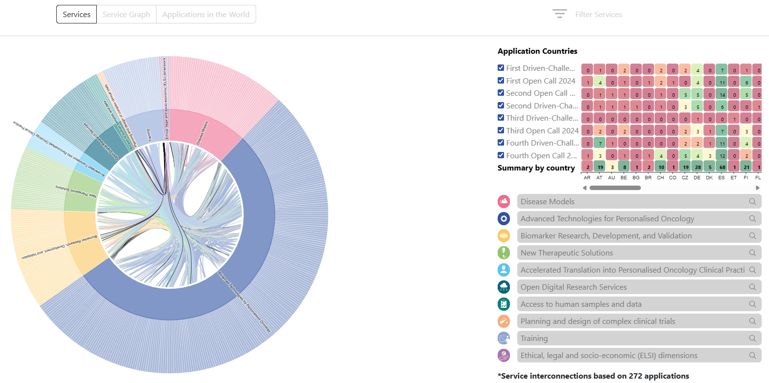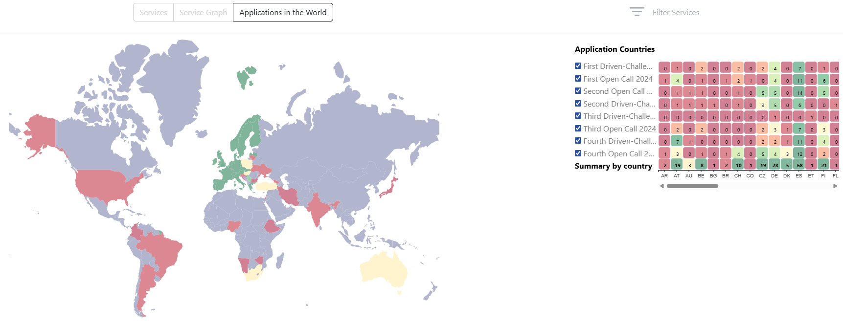 The Navigator also provides an overview of the number of applications received per country across different calls. In addition, it allows users to explore services grouped under several categories, including: